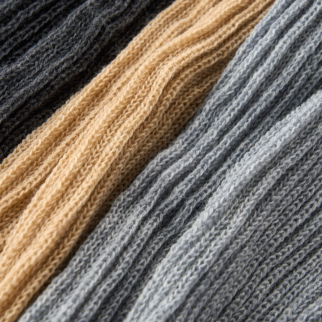 シルクとウールをミックスさせてリブ状に編むことで、もっちりと弾力のある着用感を実現しました。
