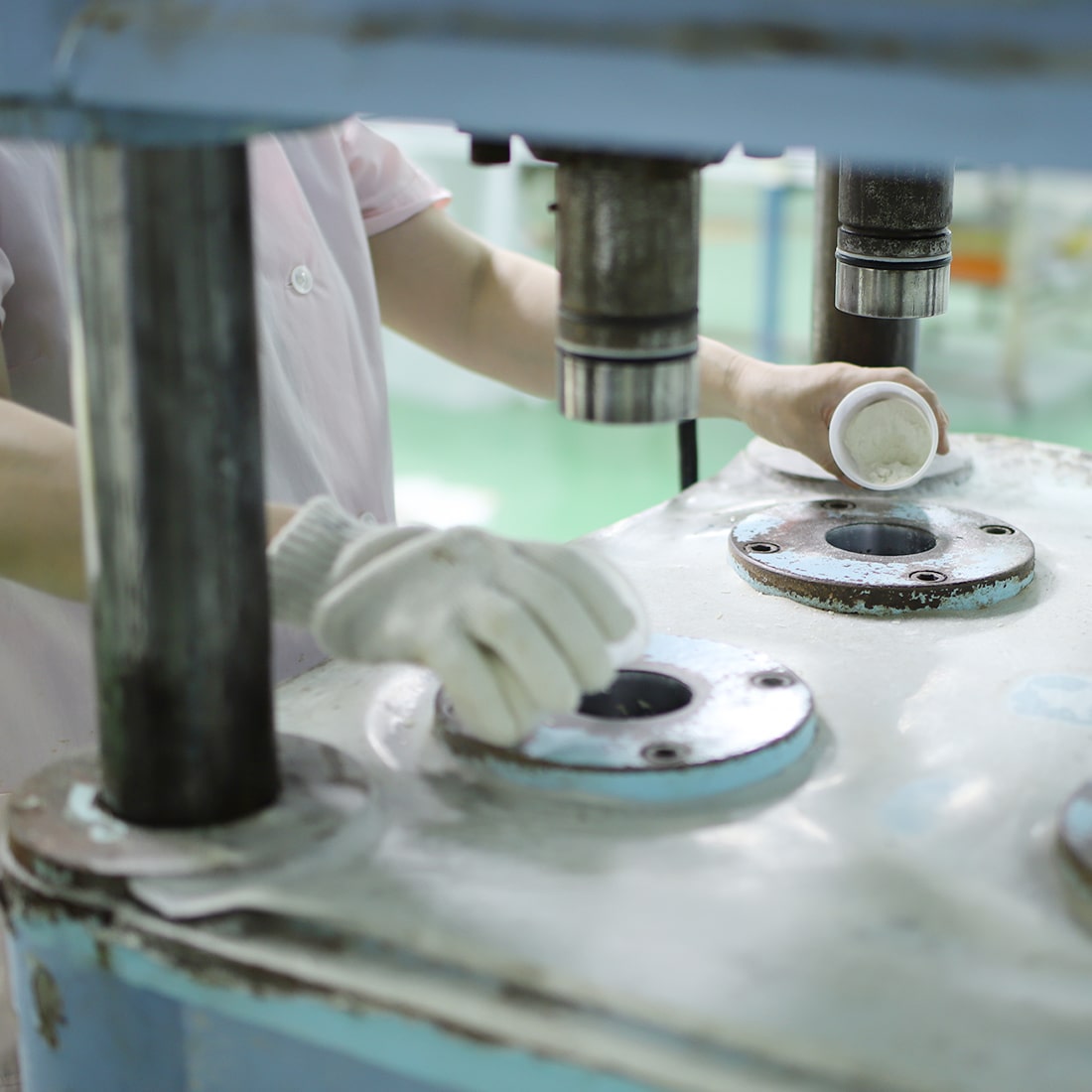 一般的な石鹸と違い、水を使わず、90tの圧力で固める真空加圧製法(特許技術)でお作りしています。