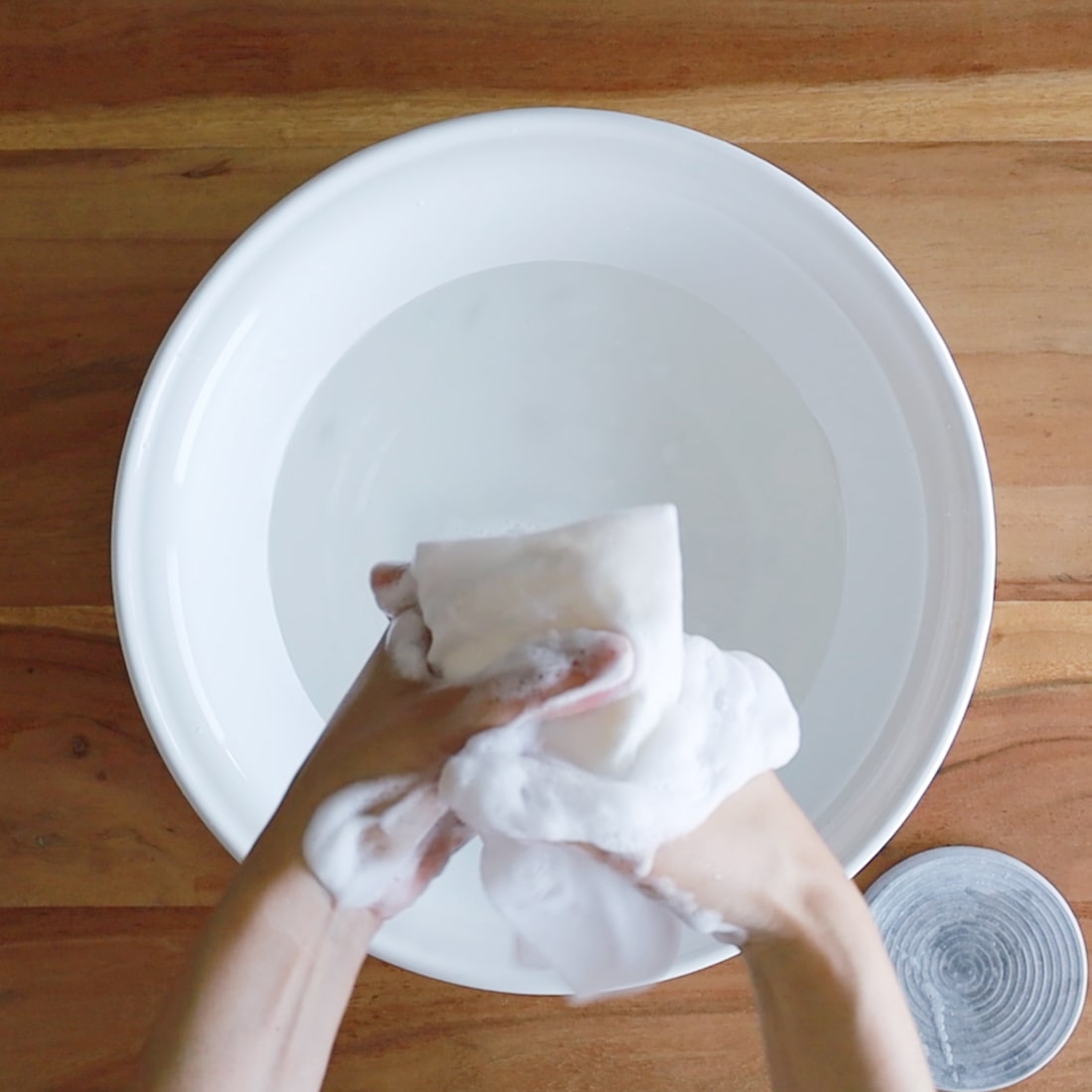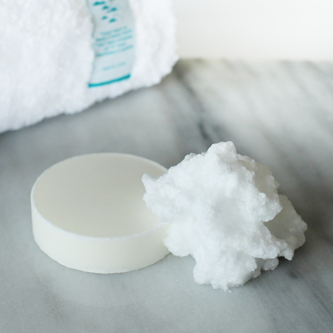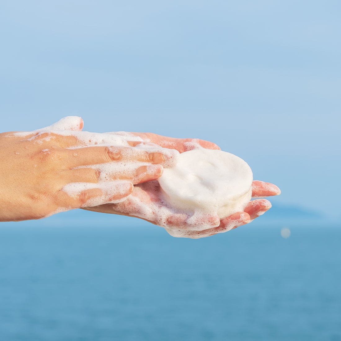素材を高い圧力で押し固めて製造しており、手だと泡立ちにくいため、泡立てネットをご使用ください。